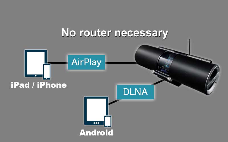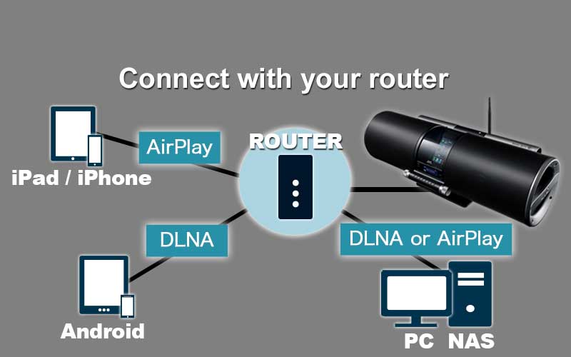 RV-S5 features wireless play with AirPlay and DLNA. Connection is very easy with only a few steps, it is unnecessary to prepare a router. You can just use wireless play from day one. Or if you have a router, you can play all the music stored in your server like a NAS. It’s a powerful and smart way to enjoy your music.